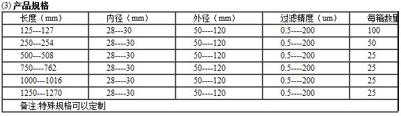 3、PP熔噴濾芯 以聚丙烯為原料,經最新的熔噴、牽引、jieshoujishu,shijubingxixianweiyikaozizhanhexianghuchanjiexingchengsanweiqujingweikongjiegou,yuchuantongzhiwuheshulichengwangfeizhizaowuzhongdexianweifenbubutong,juyougengdadebibiaomianji,genggaodekongxilv,gengxiweidekongjing,youliangdeguolvxingnenggaoyuqitaputongdeguolvcailiao。youyuxianjinghemiduzailvxindezhijingfangxiangshangfashengkekongdebianhua,youcizhichengdelvxinchengpinjiangxingchengyouneimierwaisongdeduocengtidujiegou。 特點: (1)過濾精度高,過濾流量大,壓差小,效率穩定, (2) 纖維間熔融自粘合,多層結構層與層之間纖維熔融粘合,不分層,不脫落,具有很好的剛性和微孔穩定性 (3)過濾精度控製穩定,能夠根據不同的過濾要求科學地使用濾芯 熔噴濾芯應用範圍: 飲用水前置過濾處理;R.O滲透的前置過濾處理; 製藥用無菌水、純淨水的前置過濾處理;飲料、釀酒製造中的預過濾;食用油製造中的預過濾;各式漿液的過濾;化工原料、有機溶劑的過濾;強力膠、乳膠、普通膠水製造中的過濾;機械用油、切削油等過濾;PCB藥液的過濾 ;電著塗裝(ED)、化學藥液的過濾;工業用水、電子、電鍍藥液的過濾;泳池清潔水處理的預過濾;顯像用藥液、墨水的過濾。
