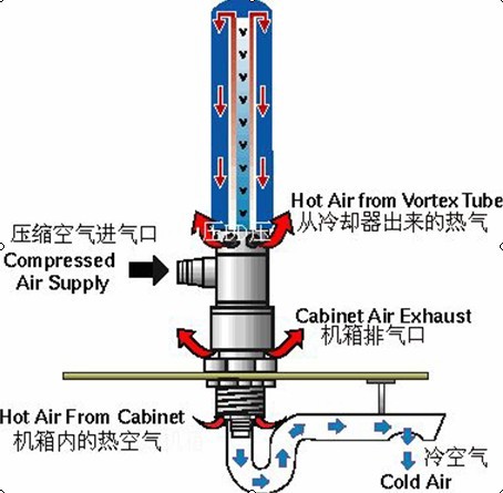 高(gao)製(zhi)冷(leng)量(liang),低(di)壓(ya)縮(suo)空(kong)氣(qi)消(xiao)耗(hao),終(zhong)生(sheng)免(mian)維(wei)護(hu),無(wu)電(dian)氣(qi)件(jian),無(wu)活(huo)動(dong)部(bu)件(jian),使(shi)用(yong)期(qi)間(jian)無(wu)需(xu)更(geng)換(huan)任(ren)何(he)備(bei)件(jian)。超(chao)低(di)溫(wen)的(de)氣(qi)流(liu)冷(leng)卻(que),降(jiang)溫(wen)效(xiao)果(guo)明(ming)顯(xian)。僅(jin)以(yi)壓(ya)縮(suo)空(kong)氣(qi)為(wei)媒(mei)介(jie),瞬(shun)間(jian)產(chan)生(sheng)-28℃的(de)溫(wen)降(jiang),可(ke)通(tong)過(guo)冷(leng)空(kong)氣(qi)分(fen)配(pei)管(guan)對(dui)密(mi)封(feng)電(dian)控(kong)櫃(gui)內(nei)特(te)別(bie)高(gao)溫(wen)的(de)大(da)發(fa)熱(re)量(liang)關(guan)鍵(jian)電(dian)子(zi)元(yuan)器(qi)件(jian)進(jin)行(xing)專(zhuan)門(men)的(de)局(ju)部(bu)冷(leng)卻(que),效(xiao)果(guo)極(ji)其(qi)明(ming)顯(xian),同(tong)時(shi),還(hai)可(ke)以(yi)增(zeng)裝(zhuang)一(yi)個(ge)電(dian)子(zi)恒(heng)溫(wen)器(qi)對(dui)電(dian)控(kong)櫃(gui)內(nei)部(bu)實(shi)現(xian)恒(heng)溫(wen)調(tiao)節(jie),並(bing)節(jie)約(yue)壓(ya)縮(suo)空(kong)氣(qi)很(hen)寬(kuan)的(de)冷(leng)卻(que)範(fan)圍(wei)。