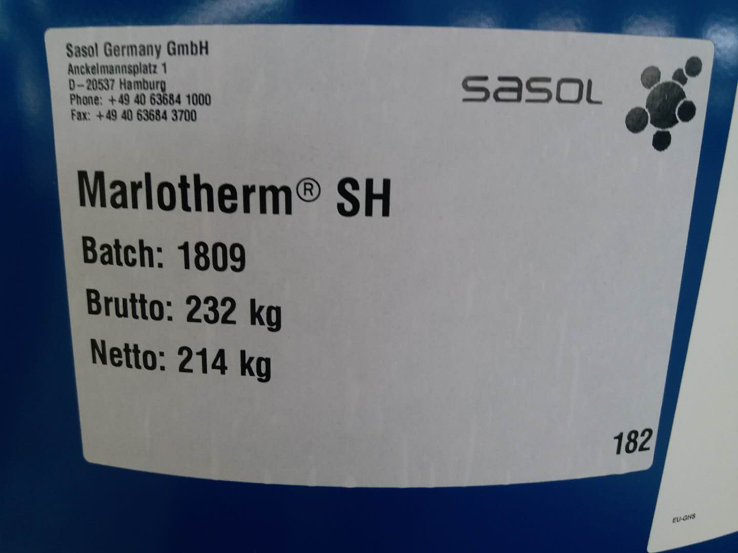☆ MARLOTHERM®SH推薦使用溫度範圍為-26℃~350℃(符合國家標準 GB 23971 L-QD350),化學成分二苄基甲苯,是全球範圍內長期使用最高使用溫度真正能夠達到350℃、膜溫380℃、閃點200℃、自燃溫度500℃、可再生循環使用、熱穩定性最佳、安全性最高的高溫合成型導熱油。 ☆ MARLOTHERM®SH是以德國沙索公司化學合成工藝生產的具有明確的單一化學結構(純度達到98%以上)和確定的化學名稱的合成型導熱油。熱穩定性極佳,長期高溫使用不易結焦結炭,長期運行成本非常低,年添加量少。 ☆ MARLOTHERM®SH是歐美市場占有率最高的液相導熱油,按照德國DIN51522-1998標準,早已通過德國多組、多批次嚴格熱穩定性型式實驗,最高加熱器出口溫度達350℃以上。 ☆ MARLOTHERM®SH不吸濕,與水不混溶,含水率極少(<100ppm)。不需要長時間煮油,排水排氣,短時間就可升溫至工作溫度而正常運行。 ☆ MARLOTHERM®SH 的閃點大於200℃,自燃點大於500℃,是安全性能最高的液相導熱油。