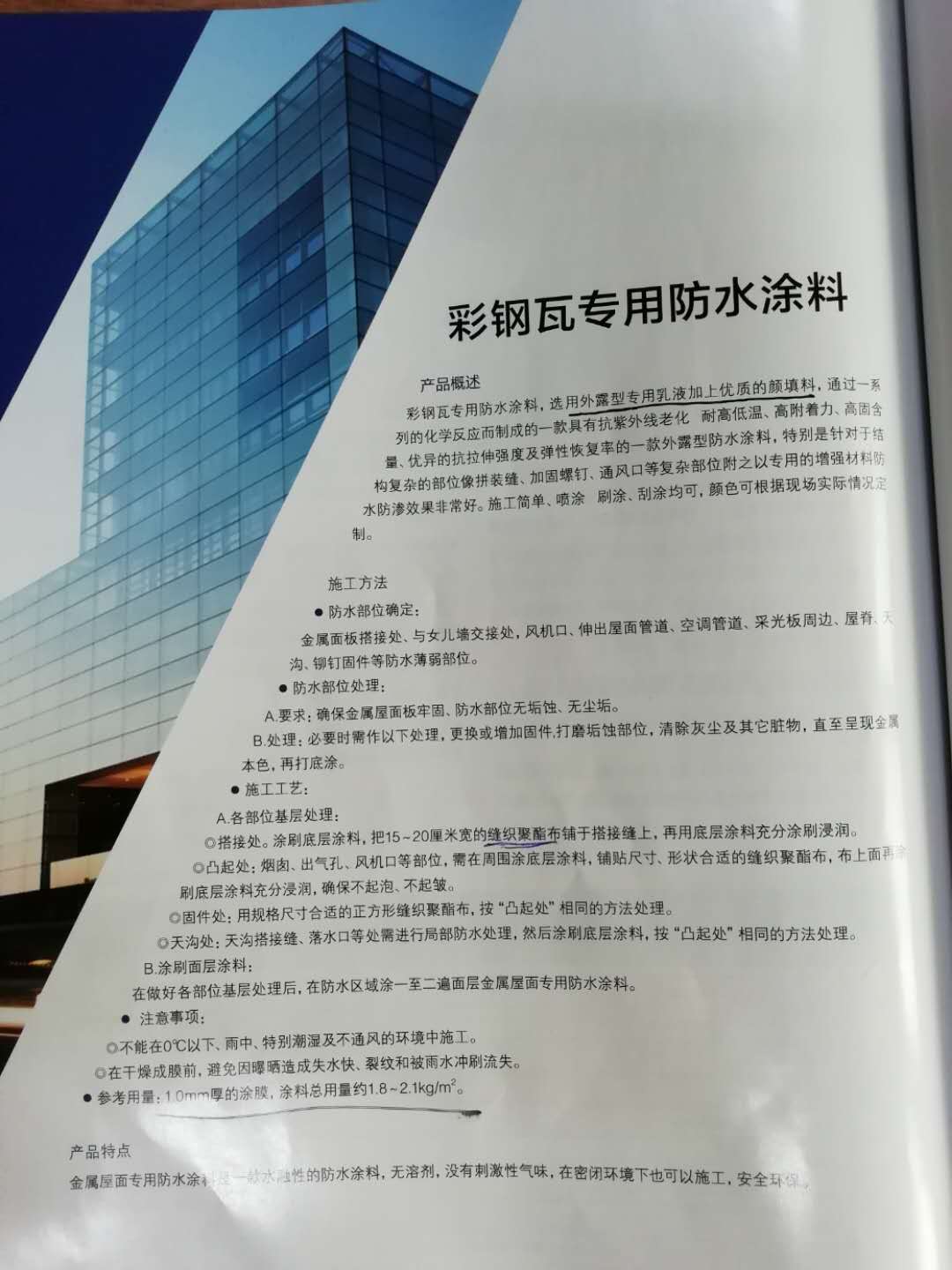 彩(cai)鋼(gang)瓦(wa)專(zhuan)用(yong)防(fang)水(shui)塗(tu)料(liao),選(xuan)用(yong)外(wai)漏(lou)型(xing)專(zhuan)用(yong)乳(ru)液(ye)加(jia)上(shang)優(you)質(zhi)的(de)顏(yan)料(liao),通(tong)過(guo)一(yi)係(xi)列(lie)的(de)化(hua)學(xue)反(fan)應(ying)之(zhi)稱(cheng)的(de)一(yi)款(kuan)抗(kang)紫(zi)外(wai)線(xian)老(lao)化(hua),耐(nai)低(di)溫(wen),高(gao)附(fu)著(zhe)力(li),高(gao)固(gu)含(han)量(liang),有(you)意(yi)的(de)抗(kang)拉(la)伸(shen)及(ji)彈(dan)性(xing)恢(hui)複(fu)率(lv)的(de)一(yi)款(kuan)外(wai)漏(lou)..