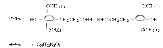 化學名稱 英文 :Benzenepropanoic acid.3,5-bis(1,1- dimeth ylethyl)-4-hydroxy-2-〔3-〔3,5-bis(1,1-dimethylethyl) - 4-hydroxyphenyl〕-1-oxopropyl〕hydrazide 中文 :N,N'-雙[3-(3,5-二叔丁基-4-羥基苯基)丙酰]肼