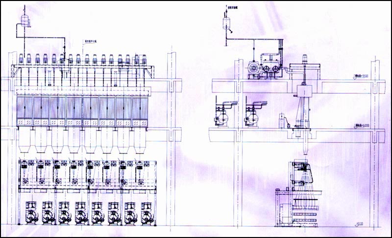 ●采用下裝式杯形組件噴絲板或橢圓形噴絲板以及新型大位距900―1500mm節能紡絲箱和有高效靜態混合器的熔體分配管道。