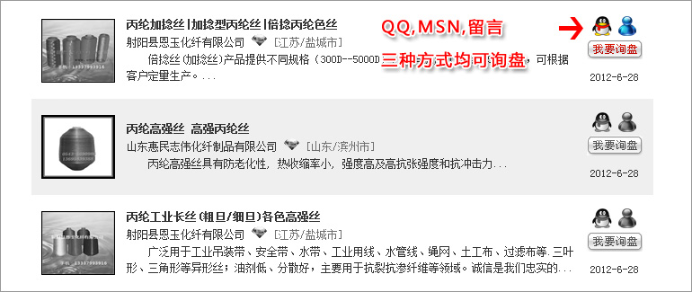 在產品頁麵,你可以通過QQ、MSN、在線留言等方式與供應商取得聯係,或直接在單個產品頁,給供應商發送詢盤。
