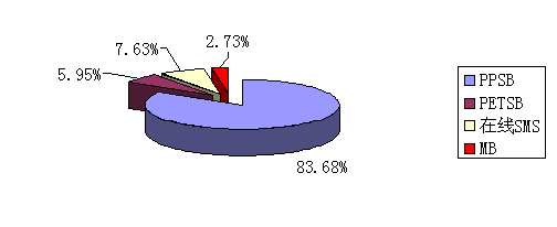 2008年中國紡絲成網非織造布各種類型分配圖(按實際產量)