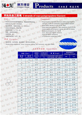 用石油精煉的副產物丙烯為原料拉絲製得的合成纖維後編織成聚丙烯纖維的繩,又稱聚丙烯纖維繩、PP繩、聚丙烯單絲繩、丙綸長絲繩,丙綸編織繩、高強度丙綸繩、丙綸繩。原料來源豐富,生產工藝簡單,產品價格相對比其他合成纖維低廉。纖維的物理機械性能特點是 :強度高(短纖維為46克/旦,長絲為58克/旦),濕強度和幹強度基本相同,比重小(0.91),耐磨損耐腐蝕等。