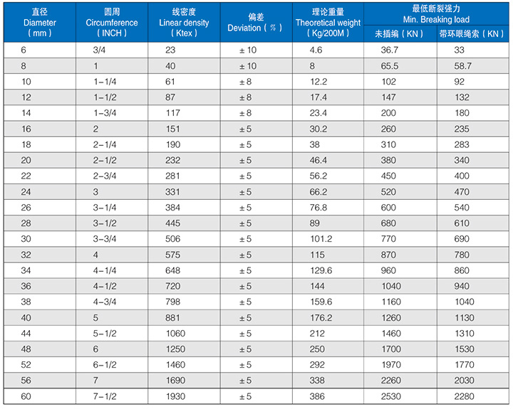 高強(超高分子量聚乙烯)三股纜繩產品介紹:高強 ( 超高分子量聚乙烯 )三股、八(ba)股(gu)及(ji)十(shi)二(er)股(gu)纜(lan)繩(sheng),采(cai)用(yong)國(guo)際(ji)先(xian)進(jin)技(ji)術(shu),對(dui)紗(sha)線(xian)進(jin)行(xing)樹(shu)脂(zhi)處(chu)理(li)製(zhi)造(zao)而(er)成(cheng)。根(gen)據(ju)客(ke)戶(hu)特(te)殊(shu)要(yao)求(qiu)可(ke)增(zeng)加(jia)保(bao)護(hu)層(ceng),進(jin)一(yi)步(bu)增(zeng)加(jia)耐(nai)磨(mo)性(xing)能(neng)。在(zai)強(qiang)度(du)上(shang)比(bi)同(tong)直(zhi)徑(jing)鋼(gang)絲(si)繩(sheng)強(qiang)度(du)高(gao),但(dan)重(zhong)量(liang)隻(zhi)有(you)鋼(gang)絲(si)的(de)15﹪ 。延伸率低,隻有3.5-4.5﹪。密度是 0.97g/cm,漂浮於水麵上;柔軟、抗紫外線,有極好的抗彎曲和抗疲勞性能,抗疲勞強度是鋼纜及尼龍纜的 1000 倍。