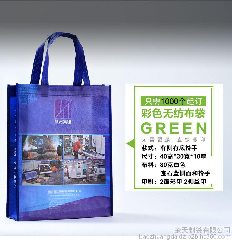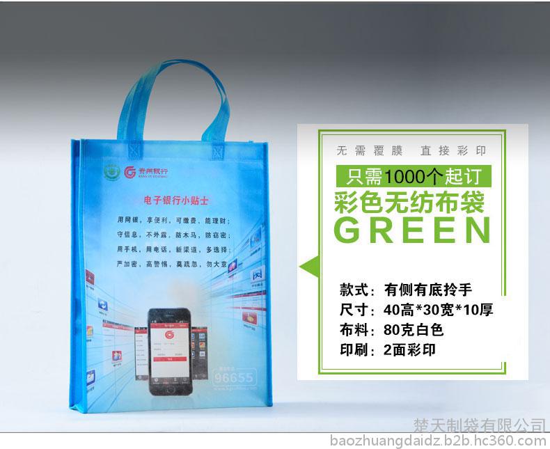【規格尺寸】可根據客戶需要定製 【產品顏色】有多種花色的布料可供選擇,還可以為用 戶定製專版圖案或顏色的布料。 【布料規格】布料厚度80g/90g/100g/ 可供選擇。 【最小訂量】1000pcs 【交貨周期】確認打樣後10天內交貨 【印刷工藝】可為客戶印刷LOGO,印刷工藝為絲網印、 熱轉印 【產品用途】作為企業的資料袋或產品包裝袋 【廣告效果】可做為購物袋反複使用/宣傳