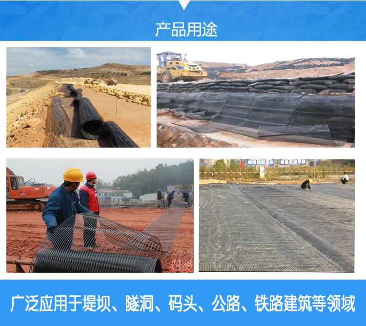 米之間,可根據施工方的要求定製。方便使用。  凸結點鋼塑複合土工格柵產品特點: 拉力大 每延米縱橫向拉伸屈服力能達到20-150KN,經交通、鐵道、水利三部產品質量監督檢驗中心檢驗。 變形小 凸點鋼塑格網的屈服伸長率≤3%;凸點塑料格網的屈服伸長率≤10%。 結點強度高 本品采用熔鑄凸點式連接縱橫筋帶構成格網,其結點強度高,焊接格網結點抗剪強度≥1.5Mpa,凸點格網結點極限剝離力≥400N 壽命長 塑料是保護高強鋼絲的材料,也是塑料格網受力材料,它具有耐酸、堿、鹽腐蝕的化學特性,經科學配方具有抗老化、抗氧化的性能,適用於各類永久性工程,使用壽命可達百年以上。 效果好 格(ge)網(wang)網(wang)狀(zhuang)熔(rong)鑄(zhu)凸(tu)結(jie)點(dian)結(jie)構(gou),增(zeng)強(qiang)格(ge)網(wang)與(yu)岩(yan)土(tu)的(de)嵌(qian)鎖(suo)咬(yao)合(he)作(zuo)用(yong),能(neng)約(yue)束(shu)土(tu)體(ti)的(de)側(ce)向(xiang)位(wei)移(yi),增(zeng)強(qiang)地(di)基(ji)承(cheng)載(zai)力(li),減(jian)少(shao)土(tu)體(ti)的(de)整(zheng)體(ti)沉(chen)降(jiang)和(he)改(gai)善(shan)土(tu)體(ti)