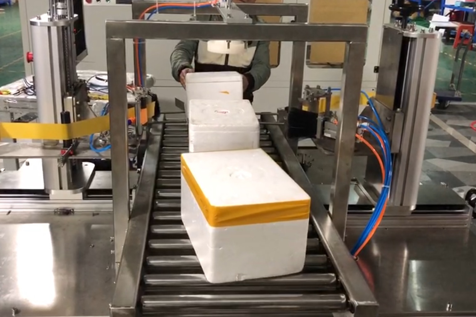 自動泡沫箱封箱機-冷凍食品泡沫箱封箱機