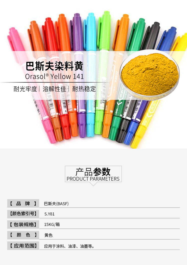 巴斯夫141金屬絡合染料黃BASF奧麗素Orasol金黃色染料溶劑黃81