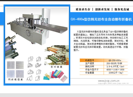 OX-600a型無紡布全自動擦布折疊機,高速運行平穩,折疊整齊.