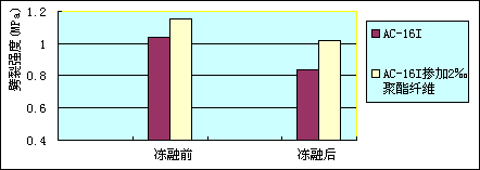 氣溫驟降和低溫環境下(如北方冬季),一般瀝青路麵會發生收縮或來不及應力鬆弛而產生開裂。若將TB-Fiber纖(xian)維(wei)加(jia)入(ru)到(dao)瀝(li)青(qing)混(hun)凝(ning)土(tu)中(zhong),使(shi)混(hun)合(he)料(liao)內(nei)部(bu)具(ju)有(you)大(da)量(liang)均(jun)勻(yun)分(fen)布(bu)縱(zong)橫(heng)交(jiao)錯(cuo)的(de)纖(xian)維(wei)單(dan)絲(si),使(shi)瀝(li)青(qing)混(hun)合(he)料(liao)的(de)彈(dan)性(xing)提(ti)高(gao),使(shi)其(qi)具(ju)有(you)良(liang)好(hao)的(de)抗(kang)變(bian)形(xing)能(neng)力(li),在(zai)低(di)溫(wen)下(xia)仍(reng)保(bao)持(chi)柔(rou)韌(ren)性(xing)和(he)較(jiao)高(gao)的(de)抗(kang)拉(la)強(qiang)度(du),有(you)效(xiao)的(de)抵(di)抗(kang)收(shou)縮(suo)應(ying)力(li),減(jian)少(shao)溫(wen)縮(suo)裂(lie)縫(feng),從(cong)而(er)改(gai)善(shan)了(le)瀝(li)青(qing)混(hun)凝(ning)土(tu)的(de)低(di)溫(wen)抗(kang)裂(lie)性(xing)能(neng)。