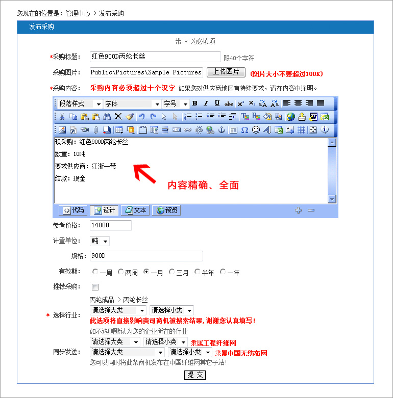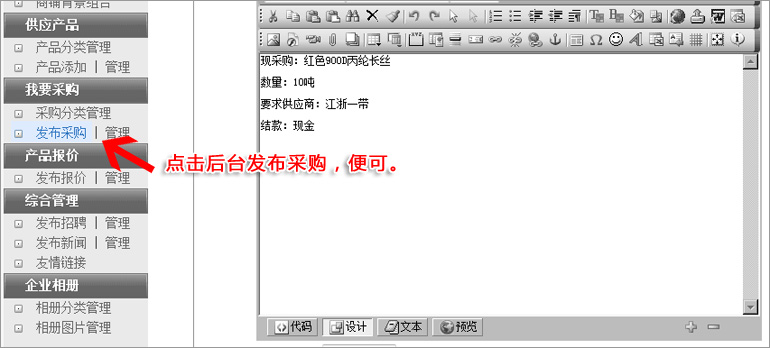 點擊後台的發布采購,在右側內容中,全麵、精確地寫下您的采購需求,有益於供應商更好地為您報價和服務。