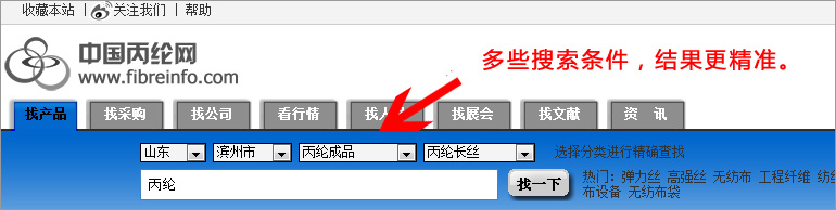 產品搜索,可以選擇地區+產品分類,結果更加精確。