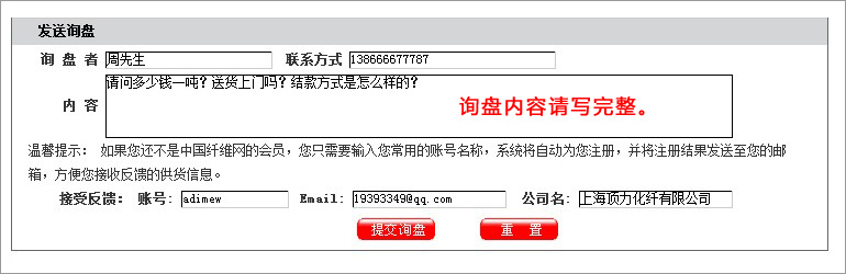 在產品頁麵,你可以通過QQ、MSN、在線留言等方式與供應商取得聯係,或直接在單個產品頁,給供應商發送詢盤。